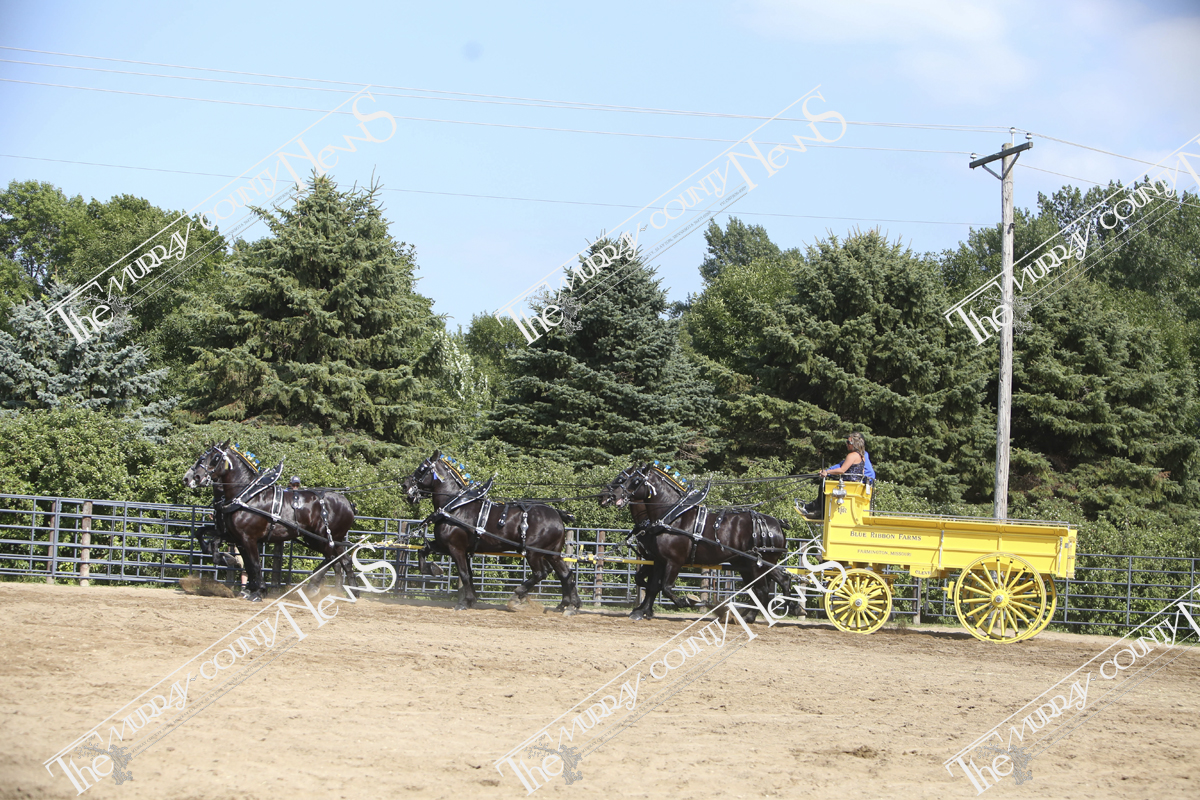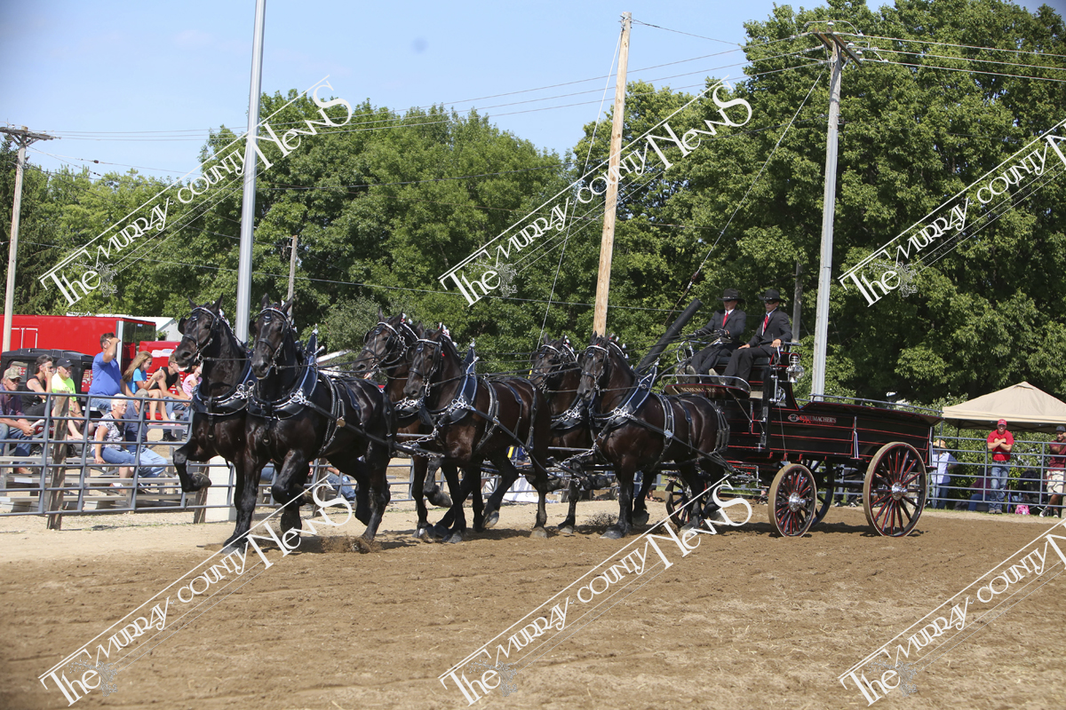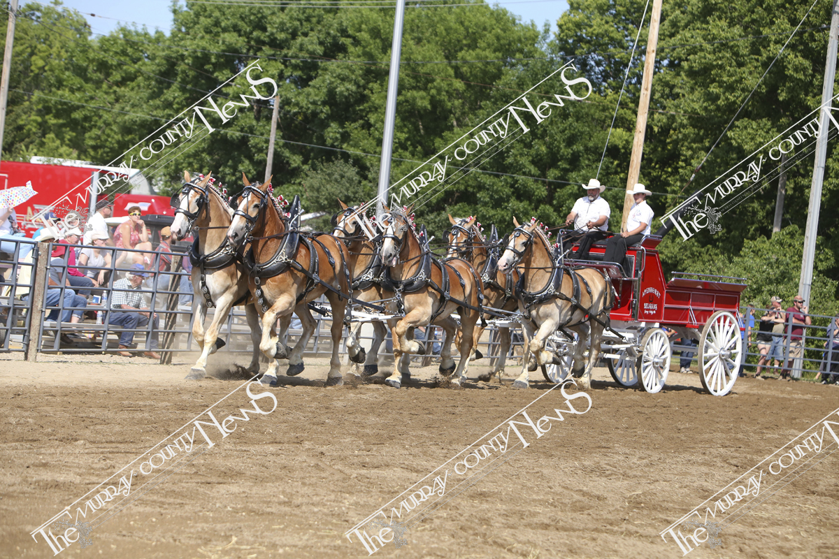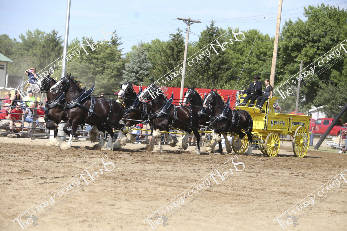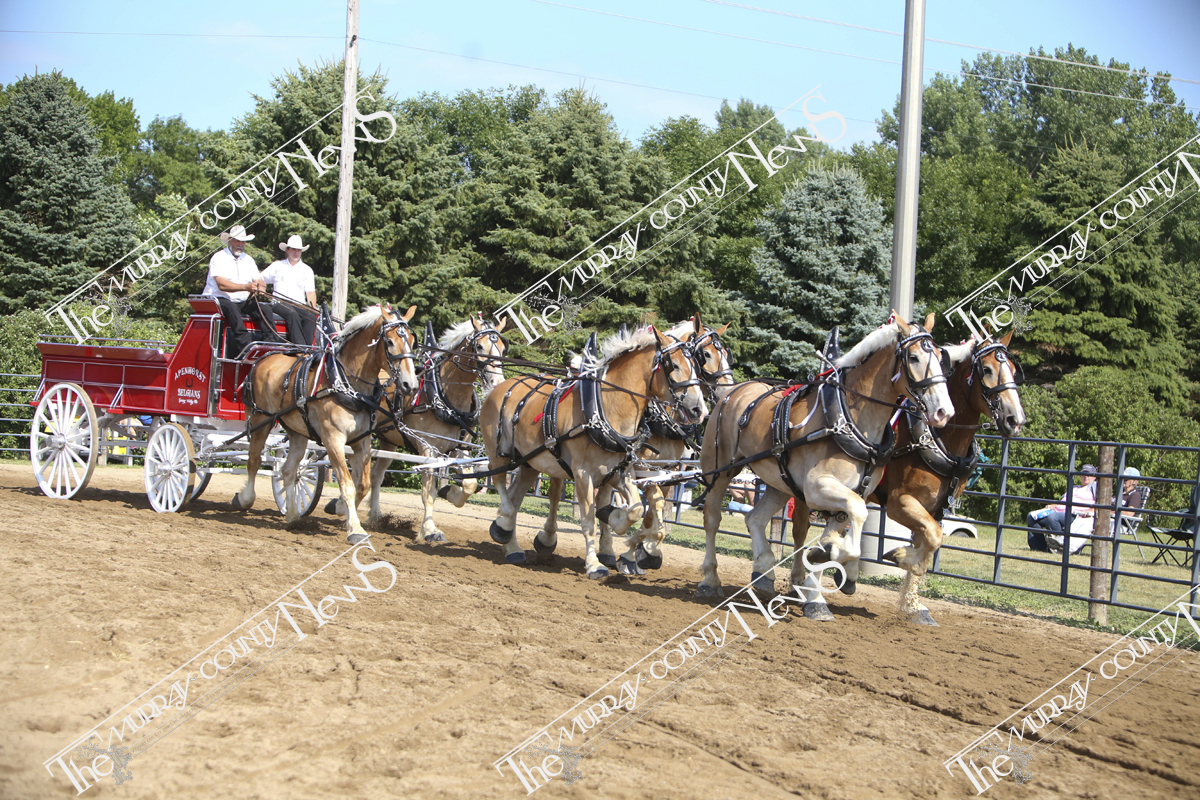 This weekend Murray County experienced its fair share of thunder; the thunder didn’t start with Sunday’s storm though. On Saturday July 9th, 2016, twelve six horse hitches and twelve draft teams, from all over the country, came thundering into the arena at the Murray CountyFairgrounds. This year marked the tenth year for the Murray County Classic Draft Horse Show and it was once again a huge success. A year’s worth of preparation from the drivers, their crew and the show’s committee finally payed off in a fantastic display of power and elegance; a true spectacular unlike any other.