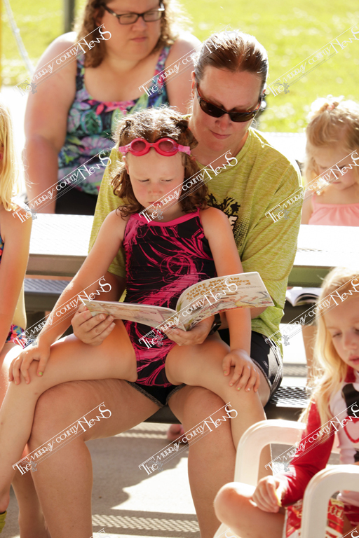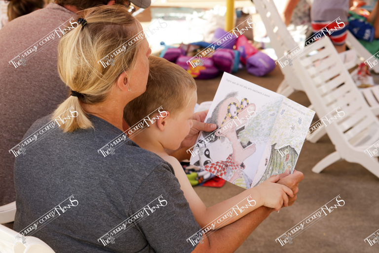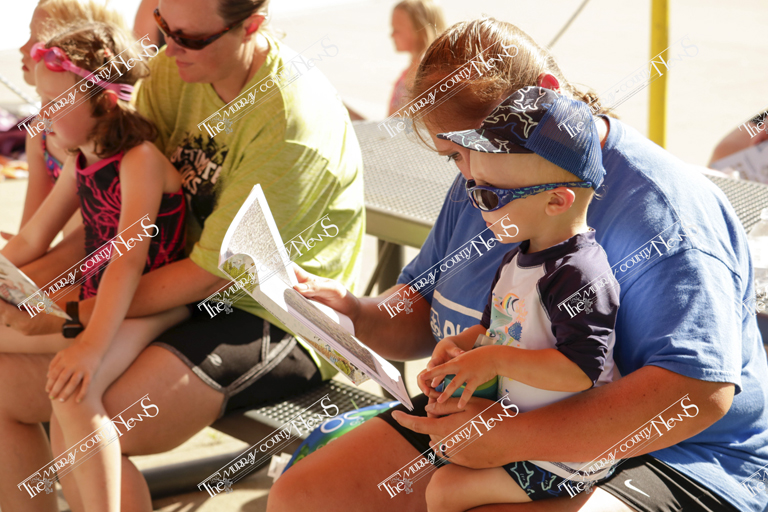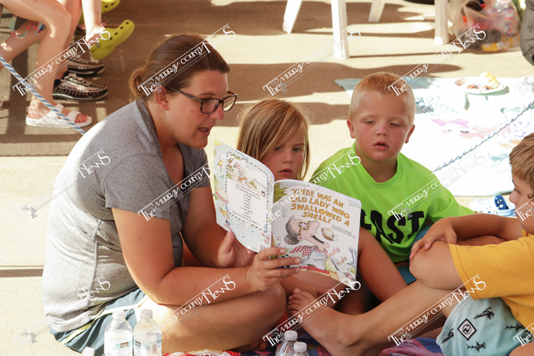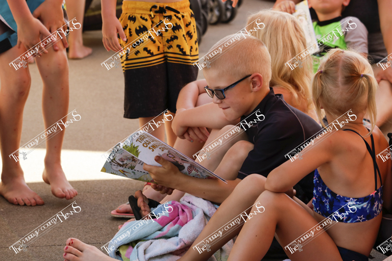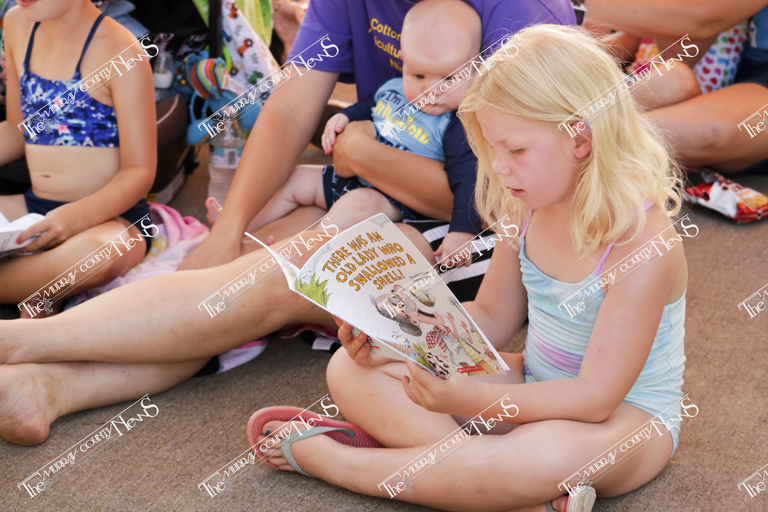 Last Tuesday evening, Slaytona Beach West played host to the Murray County Early Childhood Initiative’s (ECI) Families Reading Every Day (FRED) summer event.  All present families enjoyed a meal served by the ECI, stories read aloud by members of the community, and some free books to bring home with them.  The night closed with an open swim time and a drawing for prizes from Slaytona Beach.  Pictured in the gallery are the winners of the evening’s door prizes: (L to R) Kiana Platt ($5 concession voucher), Garret Reith ($5 concession voucher), and Baylor Sell, with parents Jake and Lindsey, and sibling Brockton and Carter, received a Family Pool Pass for 2020.