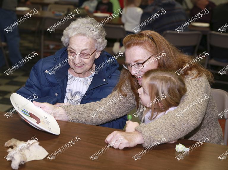 Trinity Pre-school invited grandparents to join their granddaughter/grandson last Thursday. The guests were treated to delightful songs and tales by the students. Following the presentation, the students paired up with their grandparents to create a plate with the child’s handprint imitating a turkey. Afterwards a frosted cookie and juice were enjoyed.