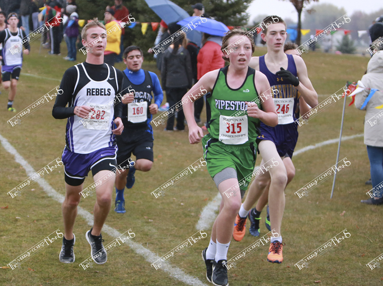 Competing in a light drizzle on a cool afternoon at Luverne last Thursday (October 25), Murray County Central / Fulda cross country runner Justin Clarke placed fourth among a huge field of 146 finishers, representing 23 teams at the Section 3A Meet which advanced eight qualifying individuals to next week’s state meet.
