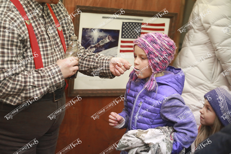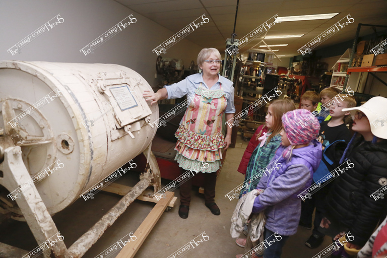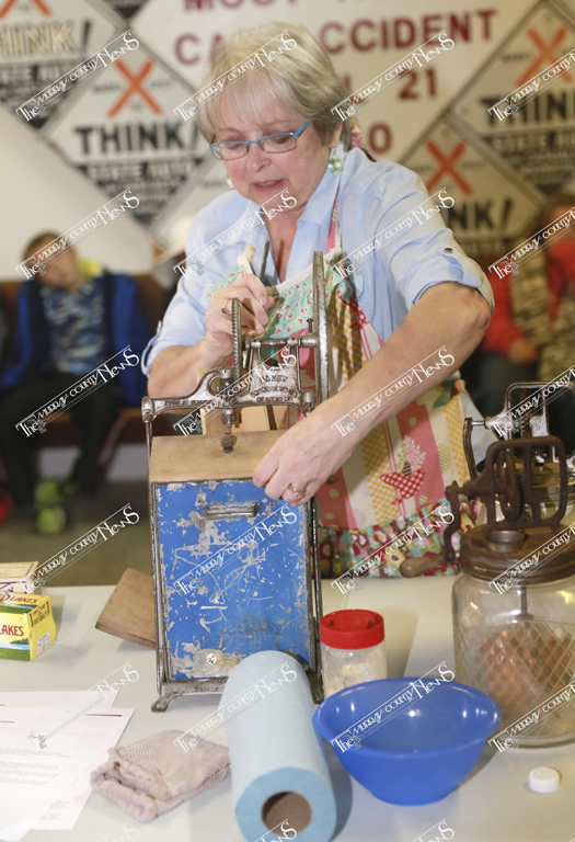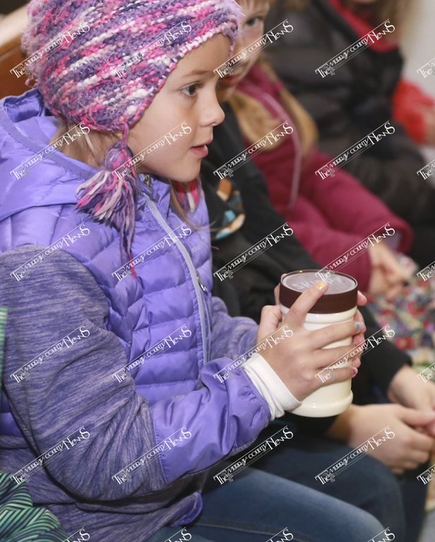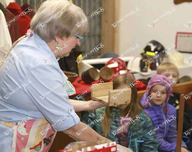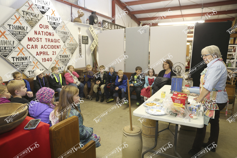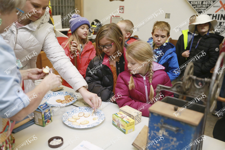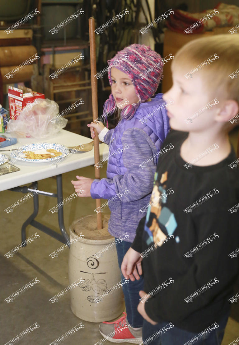 Next up was learning how to make butter. Luanne Parker, a former MCC teacher, gathered the students and preceded to share how butter was created back in the day. She started the instruction by asking what butter is made of and where it comes from. Parker informed the children that after the milk is gathered from the cow it’s put in a milk tank and as it settles the cream (or fat) floats to the top. This is skimmed off and put in a churn to start the process of making butter.