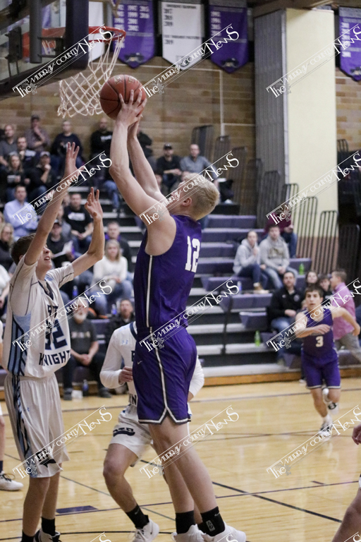 Aiden Wichmann a freshman for the Knights, knocked down three-point shots in the second half and Jonah Christiansen added eight points, all in the paint.