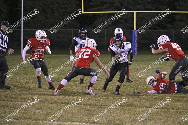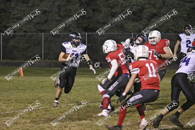 The MCC Rebels wrapped up the 2018 Football regular season on Wednesday night when they traveled to Tracy to take on the TMB Panthers. The Rebels and the Panthers had the best records coming into the final game of the season with the Rebels 6-1 and the Panthers 5-2 but the District title would not be played for by the two teams. In fact by the time the game started the Rebels already had the District won because New Ulm Cathedral beat Springfield earlier in the day eliminating the Tigers from the District title chase. Only games played within the Subdistrict count towards the title and with the Rebels undefeated coming into the game on Wednesday and Springfield having one loss beginning the day and TMB having two, the Rebels were already the winners once the Springfield game ended with their loss. MCC still wanted to win Wednesday night heading into the playoffs but mistakes cost the Rebels.