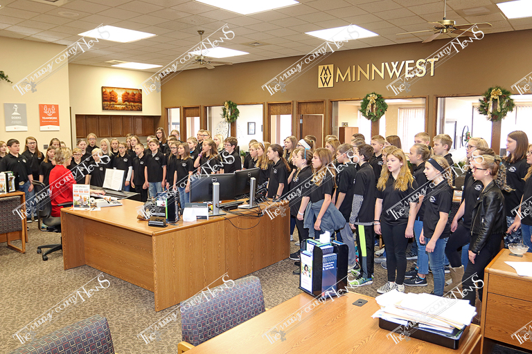 The West Rebel Choir was busy last week making stops at the Left Bank Cafe, Minnwest Bank, and the Slayton Rehabilitation and Care Center sharing some caroling songs. Selected senior high band members also entertained at the Minnwest Bank Tea last Tuesday.
