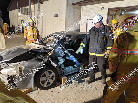 Heiman Fire Equipment and Alex Air Apparatus were on hand last Monday evening to provide equipment used in a demonstration involving extraction. Pulver Towing was gracious enough to provide vehicles for the training exercise.