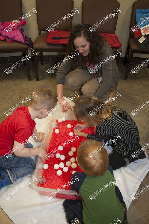 Trinity Preschoolers visited Murray County Medical Center on February 6 for some frosting and sprinkle fun with sugar cookies for Valentine’s Day! Each child decorated five cookies and took some home in a box to share with family and friends (maybe!). February is Heart Month and Paige Moser, PA-C, talked to them about heart health and they explored the makeup of blood with a sensory activity. The red water beads are the red blood cells that give us energy, the ping pong balls are the white blood cells that make us better when we’re sick and the platelets are the red pieces of foam that stick together and stop us from bleeding when we get a cut.